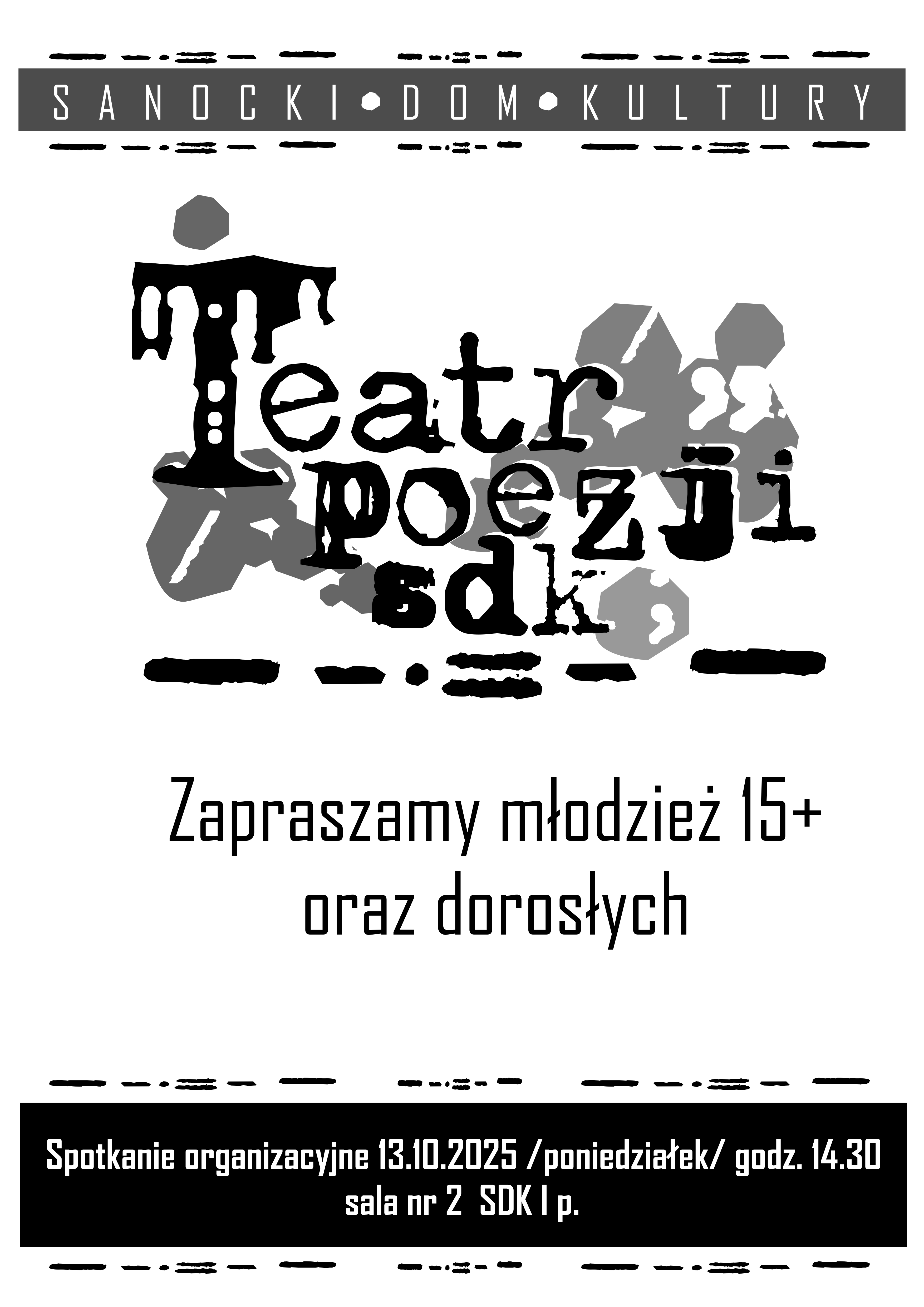Teatr Poezji od 01/10/2025 do 28/10/2025 | Zapisy Teatr Poezji Zapraszamy chętnych za zajęcia teatralno-recytatorskie Zajęcia w każdy poniedziałek o godz. 14.30